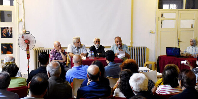 الندوة التي استضافها نادي الرابطة الأخوية في حي بستان الديوان، شارك بها الفنانون عبد الكريم عمرين، ومحمد اليوسف، وأكرم شاهين، إلى جانب نقيب الفنانين بحمص أمين رومية.