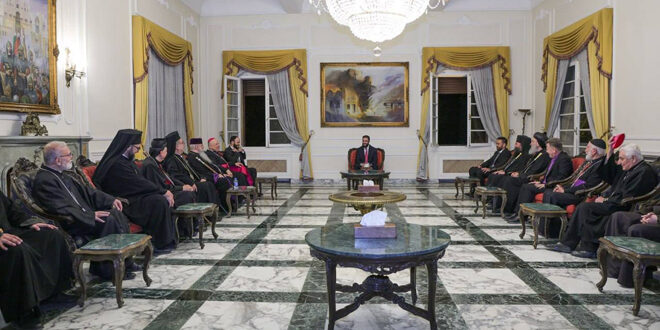 2025-05-28حلب-ساناالتقى رئيس الجمهورية السيد أحمد الشرع مع وفد من الطائفة المسيحية في محافظة حلب. الرئيس الشرع 2025-05-28aline