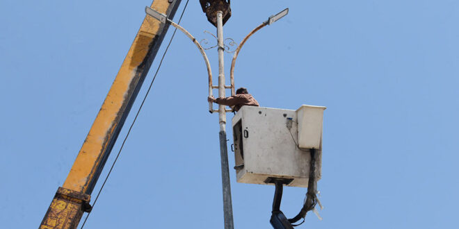 وقال مدير الخدمات والصيانة في مجلس مدينة حماة المهندس مؤيد منصور في تصريح لمراسل سانا: “إن كوادر مجلس المدينة بدأت برفع أبراج الإنارة الكهربائية في عقدة عين اللوزة ومحيطها والبالغ عددها 11 برجاً، وتركيب أجهزة الإنارة الحديثة المزودة بالطاقة الشمسية عليها، حيث تقوم الورشات الفنية بإجراءات توصيل كابلات كهربائية ذات جودة عالية، مع تجهيز لوحة تحكم رئيسية ذكية لتنسيق عمل الإشارات الضوئية.