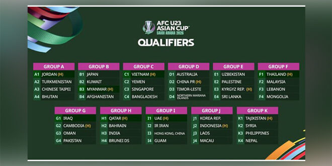 وضعت قرعة تصفيات كأس آسيا تحت 23 عاماً التي جرت اليوم في مقر الاتحاد الآسيوي لكرة القدم بماليزيا، منتخبنا الأولمبي في المجموعة الـ 11 والأخيرة، إلى جانب كل من منتخبات طاجكستان ونيبال والفلبين.