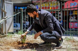 من جانبه أكد حسام النبواني متطوع في مؤسسة “يراع وإبداع” أن مشاركته اليوم في هذه الحملة تنطلق من أهمية حاجة المجتمع إلى زيادة المساحات المزروعة والمساهمة الدائمة بحملات النظافة والاهتمام بالبيئة.