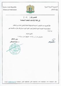 وقالت الوزارة في تعميم لها نشرته في قناتها عبر تليغرام: “نظراً لضرورة تجديد التراخيص الممنوحة لكم، لمزاولة النشاط الإعلاني المُنفذ عبر إذاعاتكم، ندعوكم لمراجعة المؤسسة العربية للإعلان لتجديد العقود المبرمة معها، وذلك خلال مدة أقصاها شهر من تاريخه”.
