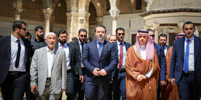 من زيارة وزير الخارجية السيد أسعد الشيباني ونظيره السعودي الأمير فيصل بن فرحان بن عبد الله آل سعود للمسجد الأموي في دمشق