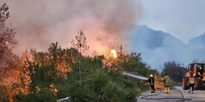 تواصل فرق الإطفاء في الدفاع المدني وفوج الإطفاء في مديرية الزراعة والأهالي جهودها، لإخماد الحريق الحراجي الذي اندلع اليوم في غابات منطقة السفكون بريف اللاذقية.