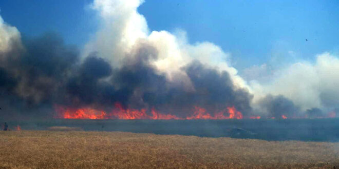 أخمدت فرق الإطفاء في الدفاع المدني حريقاً كبيراً اندلع اليوم في أراضٍ مزروعة بالقمح بين قريتي قسطون والزيارة في سهل الغاب بريف حماة.