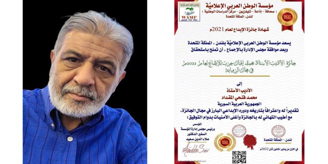 وأوضح الروائي المقداد لمراسل سانا أن فوزه هو دافع يخدم فيه قضاياه العادلة لتقديم أفضل ما لديه، ولفت إلى أن فكرة الرواية بدأت بسبب