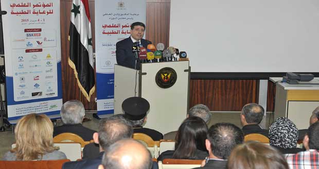 بدوره أكد نقيب أطباء سورية الدكتور عبد القادر الحسن أن المؤتمر العلمى وما يرافقه من معرض للتجهيزات الطبية والادوية يحقق أهدافا رئيسية اولها سياسى بامتياز لكونه يشكل رسالة للداخل والخارج بأن أطباء سورية صامدون رغم ما تتعرض له بلادهم من ويلات الحرب الارهابية التى فرضت عليهم ويتحدون كل من تسول له نفسه الاعتداء على قدسية وكرامة الوطن.