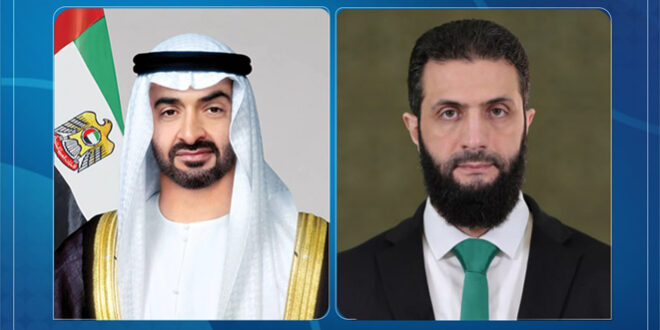 تلقى السيد الرئيس أحمد الشرع برقية تهنئة من الشيخ محمد بن زايد آل نهيان رئيس دولة الإمارات العربية المتحدة، بمناسبة عيد الأضحى المبارك.