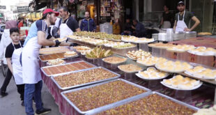 قبيل عيد الأضحى المبارك… إقبال على شراء الحلويات الدمشقية في سوق الجزماتية بحي الميدان مع انخفاض أسعارها