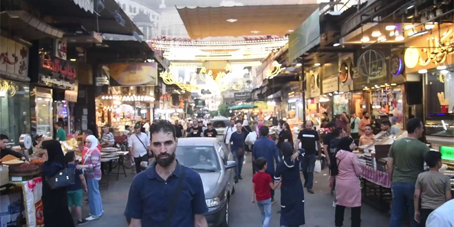 سوق الجزماتية في حي الميدان الدمشقي.. إقبال ملحوظ على شراء الحلويات مع انخفاض أسعارها مقارنة بالسنوات الماضية