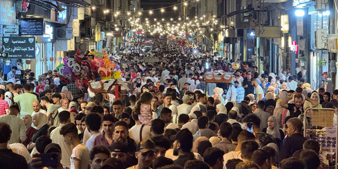 ازدحام وحركة شراء نشطة في أسواق حمص في ليلة عيد الأضحى المبارك
