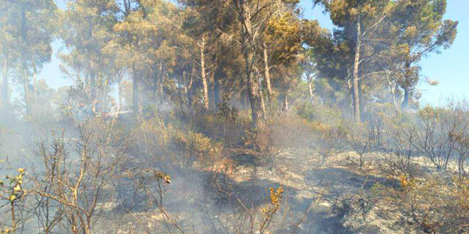 تواصل فرق الإطفاء في الدفاع المدني السوري، إخماد الحريق الحراجي، الذي اندلع في المنطقة بين قريتي كرم المعصرة وبسورم بريف صافيتا بمحافظة طرطوس.