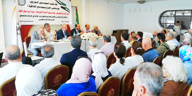 من جانبه أشار نقيب فرع اللاذقية المهندس صديق مطرجي إلى أن اللقاء شكّل فرصة لتقييم واقع العمل الهندسي في المحافظة، وطرح مقترحات لتطوير بيئة العمل لناحية رقمنة العمل النقابي، وتفعيل المنصات التدريبية الرقمية، وتحسين واقع الاستثمارات.
