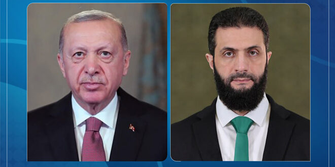 تلقى رئيس الجمهورية العربية السورية السيد أحمد الشرع اتصالاً هاتفيّاً من فخامة رئيس الجمهورية التركية السيد رجب طيب أردوغان، تطرقا خلاله إلى آخر المستجدات التي تشهدها المنطقة.
