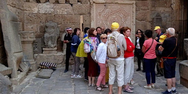 زارت مجموعات سياحية من الولايات المتحدة، ودول أوروبية ضمت 35 شخصاً مدينة بصرى الشام بريف درعا الشرقي، واطلعت على الأوابد التاريخية فيها.