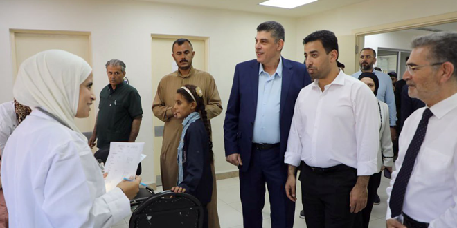 واطّلع الوزير خلال الجولة على سير العمل في هذه المشافي، ومستوى الخدمات الطبية المقدمة، مشدداً على أهمية رفع سوية الأداء الطبي، وتحسين جودة الرعاية الصحية، لضمان تلبية احتياجات المرضى وفق أعلى المعايير، وخاصة في ظل الظروف الراهنة.
