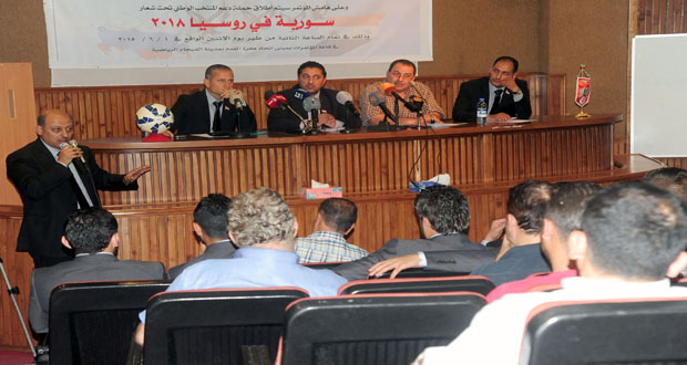 وفي ختام المؤتمر تم اطلاق حملة دعم المنتخب الوطني الأول للرجال تحت عنوان “سورية” بروسيا 2018 وتأتي هذه الحملة في إطار الجهود المبذولة لتحفيز وتشجيع اللاعبين لتقديم كل ما لديهم متسلحين بالإرادة والثقة نحو كأس العالم.