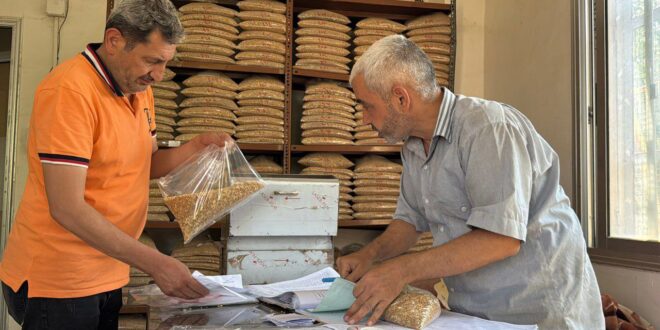 مركز تل بلاط بمحافظة حلب يشهد إقبالاً كبيراً من المزارعين لتسليم محصول القمح