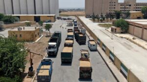 مركز تل بلاط في محافظة حلب التابع للمؤسسة السورية للحبوب يشهد إقبالاً كبيراً من المزارعين لتسليم محصول القمح، بعد قرار السيد الرئيس أحمد الشرع منحهم مكافأة مالية قدرها 130 دولاراً للطن الواحد.