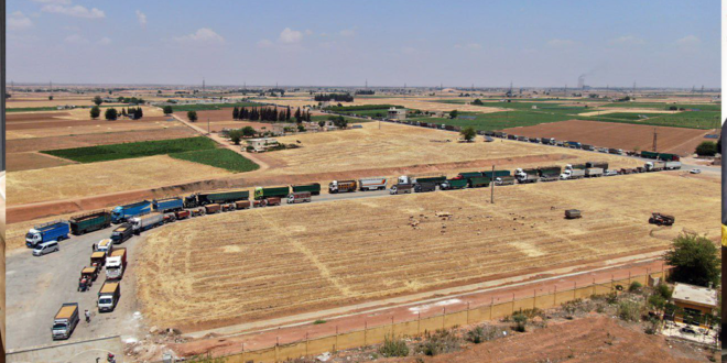 حلب-سانا مركز تل بلاط في محافظة حلب التابع للمؤسسة السورية للحبوب يشهد إقبالاً كبيراً من …