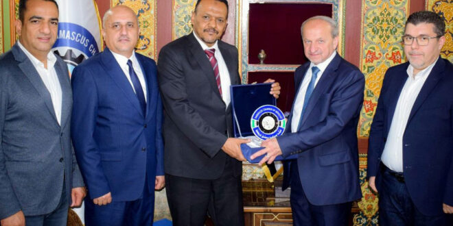 بحث رئيس غرفة صناعة دمشق وريفها المهندس محمد أيمن المولوي، مع القائم بالأعمال بالإنابة في سفارة جمهورية السودان بدمشق الدكتور أحمد إبراهيم حسن، أوجه التعاون الاقتصادي، وتبادل الخبرات بين البلدين.