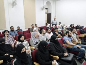 وجرت المناقشة بحضور وزير التعليم العالي والبحث العلمي الدكتور مروان الحلبي، ورئيس جامعة دمشق الدكتور محمد أسامة الجبان، وعدد من أعضاء الهيئة التدريسية والمهتمين بالشأن العلمي والديني.