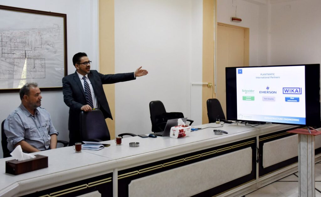 وتحدث المهندس طلال قطمة مدير شركة بلانتماتيك للطاقة والتحكم عن التقنيات الجديدة لأجهزة القياس الدقيقة الحقلية للوحدات الإنتاجية من شركة ويكا الألمانية، وقدم شرحاً تقنياً عن كيفية فهم متطلبات نظم قياس المستوى في خزانات المشتقات النفطية، ومحددات اختيارها ومكوناتها.