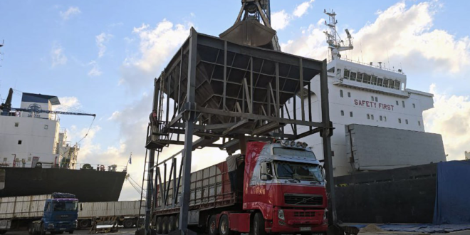 ولفت علوش إلى أن عملية التفريغ تستغرق 8 أيام وفق إجراءات فنية وتنظيمية تهدف إلى ضمان انسيابية العملية وسرعتها مع مراعاة شروط السلامة والجودة.