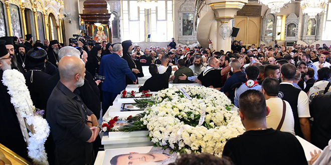 وتخلل المراسم إقامة صلاة الجناز على أرواح الضحايا بحضور عدد من أصحاب الغبطة والنيافة من الطائفة المسيحية في سوريا، إضافة الى حشود غفيرة من المواطنين.
