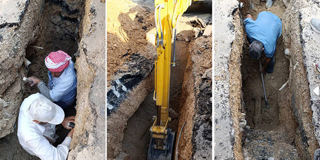 من جهته، أوضح العامل عادل هنود من ورشة الإصلاحات في مركز الطوارئ بالمزة، أن الورشة تنقلت برفقة فريق التنقيب لوضع العلامات اللازمة للحفر، وتم تنفيذ ما بين 7 و8 حفريات بناءً على هذه المؤشرات، إلا أن التلوث بقي قائماً نتيجة عمق الخط الذي تجاوز المترين ونصف، ما اضطر المؤسسة إلى اتخاذ قرار بقص الخط وتغييره بالكامل.