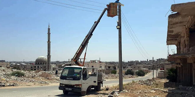 نفذت ورشة الإنارة في مجلس مدينة درعا أعمال تركيب أجهزة إنارة تعمل بالطاقة الشمسية بقدرة 400 واط في أحياء المنشية بدرعا البلد، ضمن خطة المجلس لتحسين الواقع الخدمي في المناطق السكنية التي تعرضت للدمار خلال السنوات السابقة، والاعتماد على حلول بديلة صديقة للبيئة.