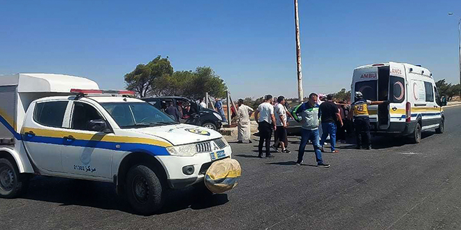 أصيب 12 مدنياً بجروح متفاوتة إثر حادث مروري قرب مفرق إيكارد على طريق دمشق – حلب الدولي.