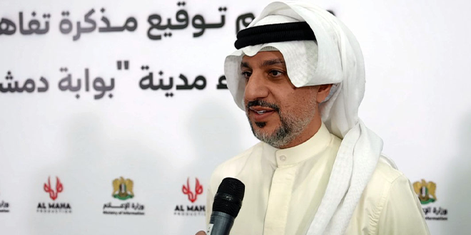 أكد رئيس مجلس إدارة شركة المها الدولية للإنتاج الفني والدعاية والإعلان محمد العنزي أن مشروع إنشاء مدينة “بوابة دمشق” للإنتاج الإعلامي والفني والسياحي في سوريا والذي تم توقيع مذكرة التفاهم الخاصة به اليوم مع وزارة الإعلام سيستقطب الإعلام العربي والعالمي.