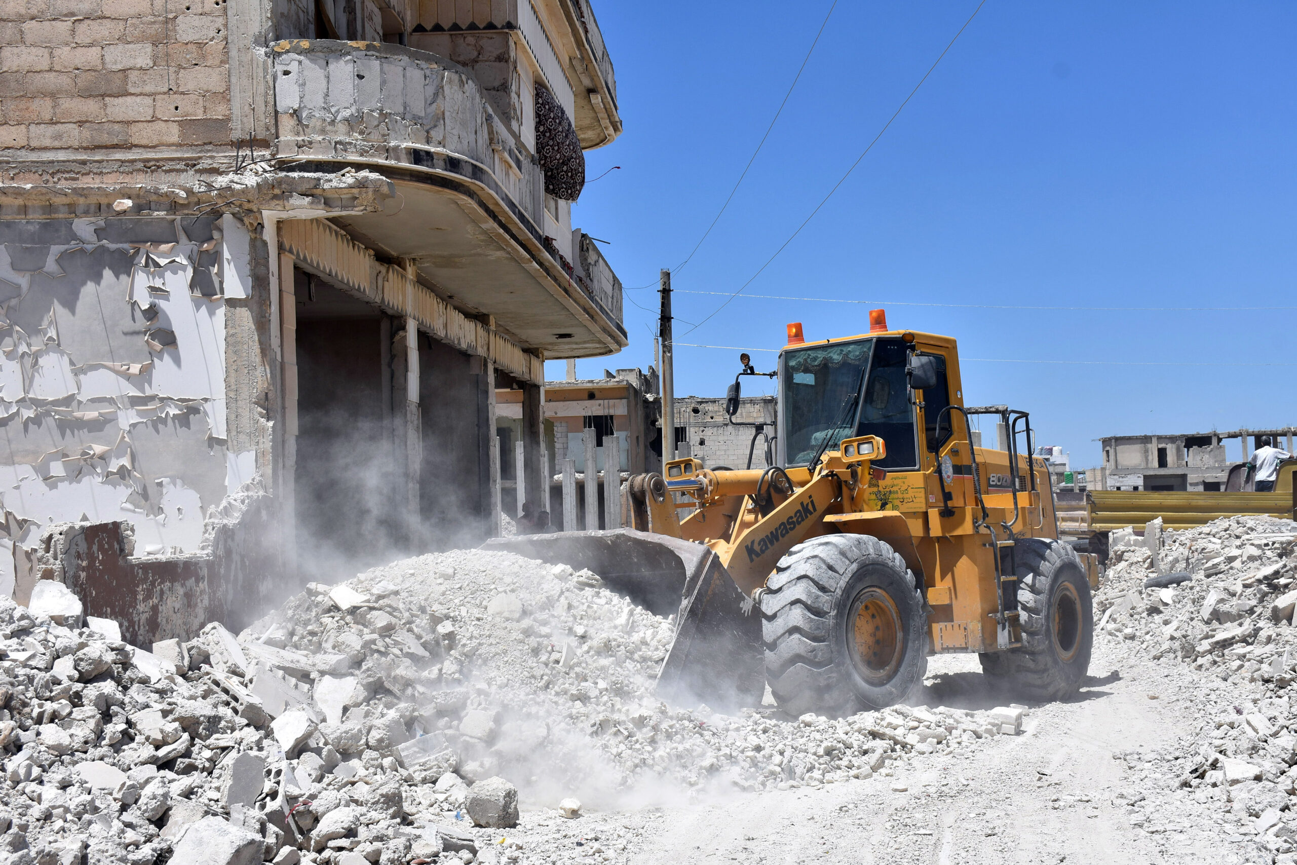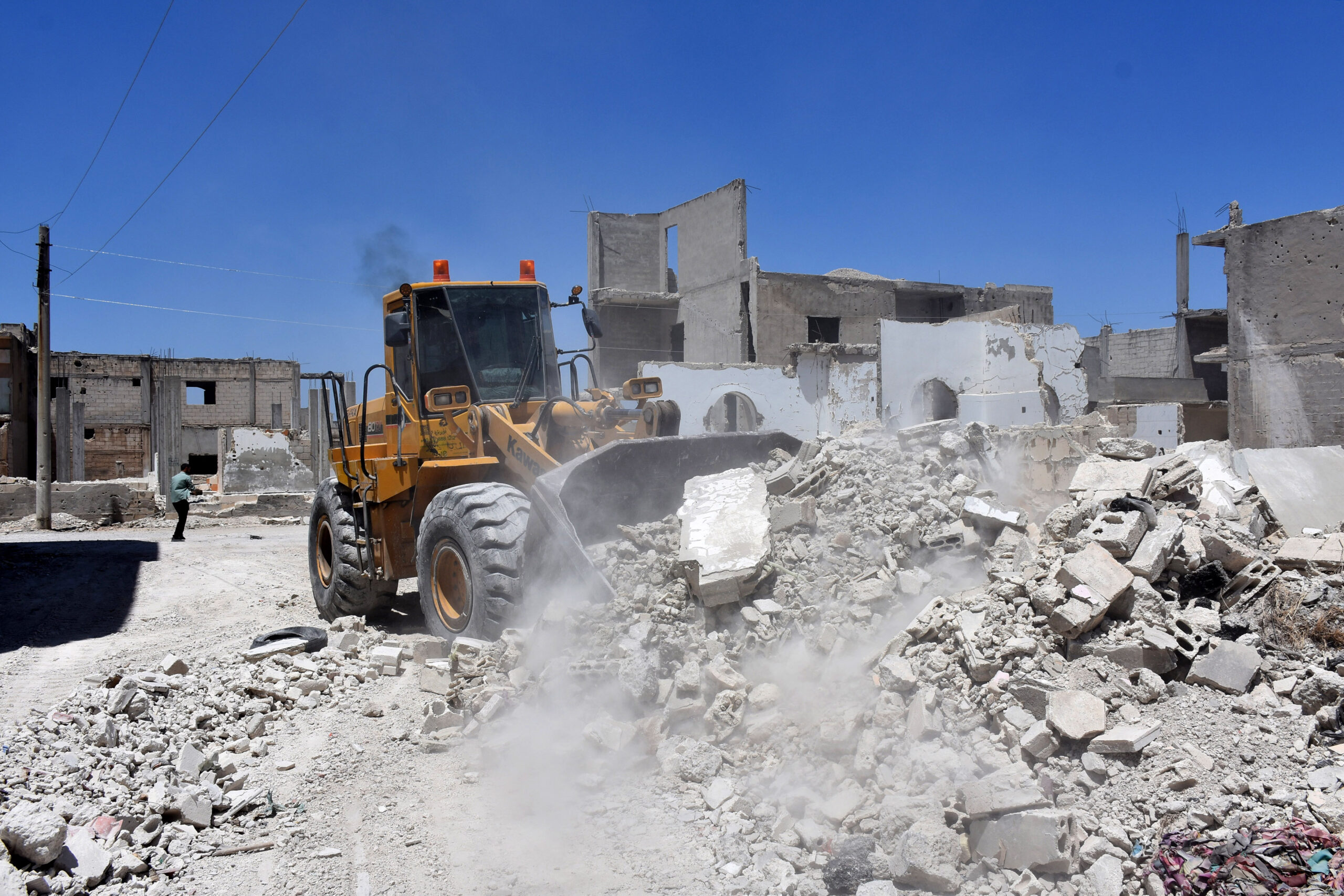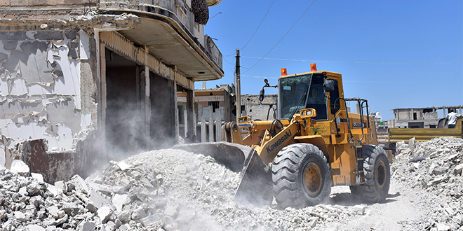 وأوضح المشرف على أعمال ترحيل الأنقاض في مجلس المدينة المهندس سامر محمد لمراسلة سانا، أن مجلس المدينة بدأ منذ التحرير حملة ترحيل للأنقاض وتنظيف الشوارع المهدمة، وكانت الأولوية للأحياء التي تقدم سكانها بطلبات لفتح الشوارع أمام منازلهم، لافتاً إلى أن خطة مجلس المدينة تتضمن إزالة الأنقاض من كامل الأحياء، حيث تم العمل خلال الفترة السابقة على أحياء كرم شمشم وجب الجندلي.