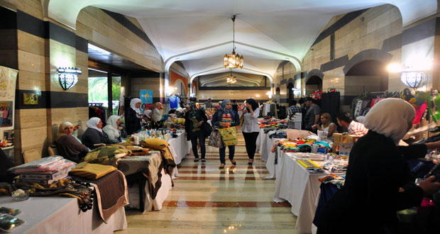 ويضم البازار أعمالا ومنتجات حرفية ويدوية من الصوف والمطرزات والاكسسوارات والألبسة إضافة إلى المواد الغذائية.