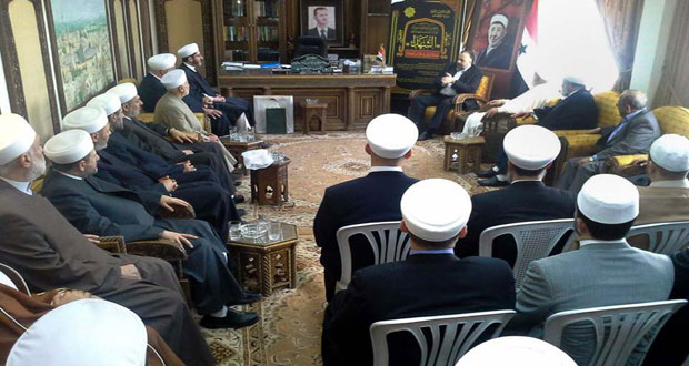 أكد وزير الأوقاف الدكتور محمد عبد الستار السيد خلال لقائه اليوم علماء دمشق أهمية إطلاق وثيقة تطوير الخطاب الديني “ميثاق الشرف الديني” في هذه المرحلة بالذات حيث يتصدى شعبنا ووطننا إلى حملات التضليل والإرهاب التي تطلقها عصابات التكفير والإلحاد والتي تقف وراءها الامبريالية والصهيونية العالمية وأدواتهما من الخوارج الوهابية والرجعية العربية.