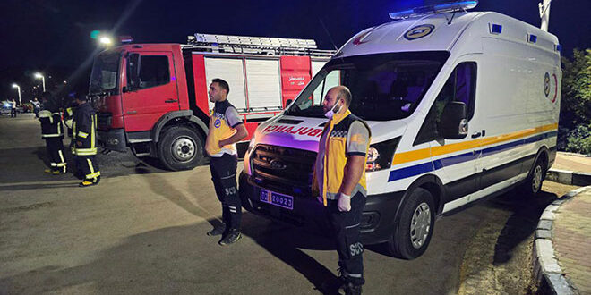تتواجد سيارات الإسعاف والإطفاء في ساحة الجندي المجهول بدمشق، لتأمين سلامة الأهالي أثناء الاحتفال بإطلاق الهوية البصرية الجديدة للجمهورية العربية السورية.