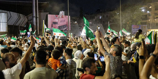من أجواء الاحتفالات بإطلاق الهوية البصرية الجديدة للجمهورية العربية السورية في ساحة العباسيين بدمشق