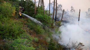 وأكد كيال، أن فرق الإطفاء لا تزال تبذل كل طاقتها في مواجهة النيران لمنع وصولها إلى القرى المجاورة والأماكن المأهولة بالسكان، مشيراً إلى التنسيق مع وزارة الطوارئ وإدارة الكوارث لاستقدام فرق مؤازرة من مختلف المحافظات، والتنسيق مع عدة وزارات لتأمين آليات مجنزرة تساعد على فتح طرق جديدة، وتمكين الفرق من عزل بؤر النار والحد من انتشارها.
