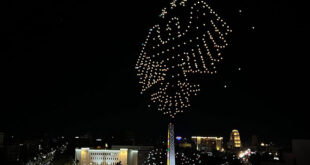 وشهدت الاحتفالية عرضاً بصرياً بطائرات الدرون مثّلت، العقاب السوري، وخارطة سوريا بعلم الثورة، ومعالم سوريا الأثرية والتاريخية من مختلف المحافظات وشعاري “كلنا مع الخوذ البيضاء” و “سوريا لكل السوريين”، واختتم العرض برسم شعار الدولة العقاب السوري.