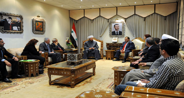 وبين المفتي حسون خلال لقائه اليوم وفد مجموعة الصداقة الأرمينية السورية أن للشعبين الأرميني والسوري تاريخا طويلا من العلاقات العميقة والتعاون البناء وأرمينيا كانت من أوائل الدول التي وقفت إلى جانب سورية في مواجهة الإرهاب والتطرف.