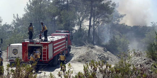 وقال كيال في تصريح لسانا إن فرق الإطفاء تواصل العمل للسيطرة عليها ومنع توسعها.