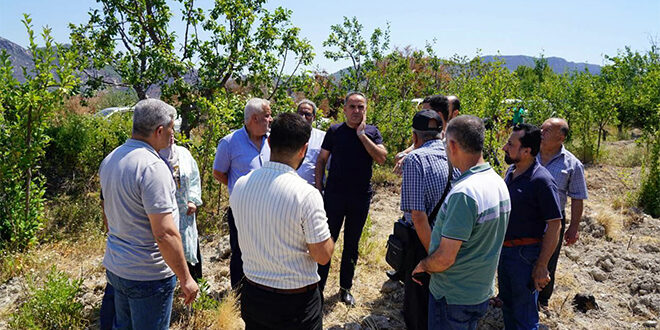 تفقد وزير الزراعة الدكتور أمجد بدر، برفقة مدير منطقة الحفة يامن الشغري ومدير الزراعة في اللاذقية المهندس عبد الفتاح السمر، خلال جولة ميدانية اليوم، الأراضي الزراعية في قرى جبل الأكراد، وذلك في إطار متابعة الأضرار التي خلفتها الحرائق الأخيرة، وتقييم واقع القطاع الزراعي في المنطقة.