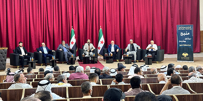 عقد محافظ حلب عزام الغريب، اجتماعاً موسعاً مع الفعاليات الأهلية في مدينة منبج، بحضور مدير المنطقة المهندس هاشم الشيخ وعدد من مديري الدوائر والمؤسسات الحكومية العاملة فيها.