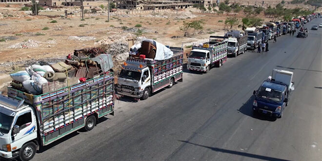 أكثر من 100عائلة تغادر مدينة عفرين في ريف حلب الشمالي عائدة إلى بلداتها في ريف دمشق