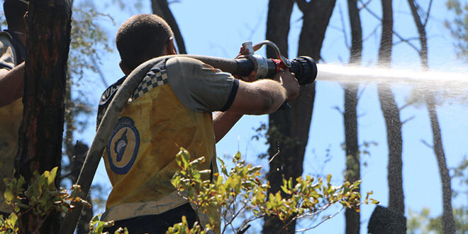 2025-07-12 لليوم الـ 10 على التوالي فرق الإطفاء والدفاع المدني السوري تواصل إخماد الحرائق في جبل الزاهية بريف اللاذقية 2025-07-12SAMER