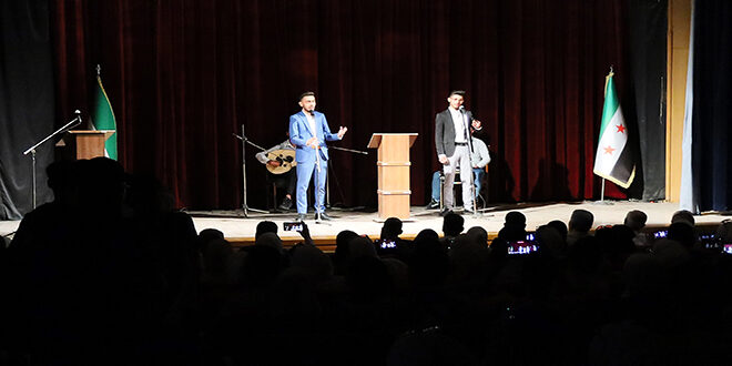 احتضن مسرح دار الكتب الوطنية في حلب مساء اليوم حفل إشهار “مؤسسة المئة التنموية”، وذلك تحت شعار “مئة صدى وصوت” وبرعاية مديرية الثقافة في حلب، وبمشاركة جمهور متنوع وأطياف فنية شابة.