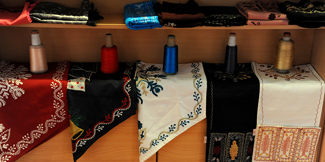 المعرض الذي أُقيم بالتعاون مع منظمات أهلية ومبادرات تنموية، تميّز بعرض مفارش مطرّزة يدوياً على أقمشة طبيعية كالحرير والقطن والبولينا، أنجزتها سيدات أعدن تأهيل أنفسهن مهنياً بعد سنوات من توقف المشروع بسبب ظروف الحرب.