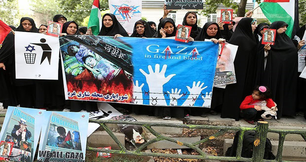 وأعرب المحتجون عن تضامنهم مع الشعب الفلسطيني في غزة ومقاومته وتصديه للعدوان الصهيوني داعين الأوساط الدولية لمحاكمة مسؤولي الاحتلال الإسرائيلي باعتبارهم مجرمي حرب وقتلهم للعشرات من الأطفال والنساء الأبرياء العزل.