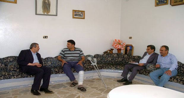 تقديرا لدورهم الوطني في مواجهة الإرهاب زار محافظ السويداء الدكتور عاطف النداف أمس عددا من جرحى الجيش والقوات المسلحة المصابين بإعاقات دائمة في منازلهم بمدينة صلخد وقرى وبلدات عرمان وصما البردان وتل اللوز وتحولا والثعلة وقدم لهم منحا إنتاجية مولدة للدخل وسللا غذائية.